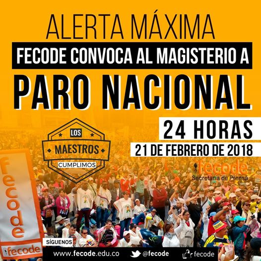 Fechas de pago del paro y los subsidios en febrero de 2024 , Fecode convocó a la doble jornada de protestas, ante las denuncias de amenazas contra los docentes.